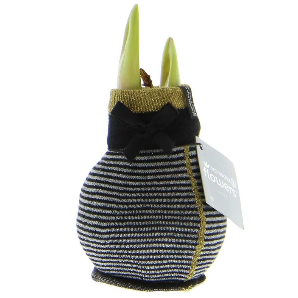 Bulbe D’amaryllis Dans Les Chaussettes D’hiver « fashion Elegant » Rayé Noir Et Gris